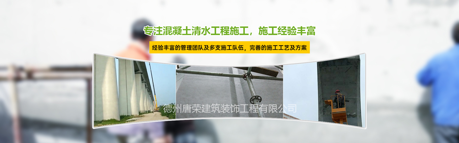 德州唐榮建筑裝飾工程有限公司是一家從事清水混凝土裝飾保護的專業承包施工商,公司是由一支幾十人清水裝飾涂裝隊組建而來公司主要致力于清水混凝土后期混凝土缺陷修補、無痕修補、混凝土色差調整、仿清水混凝土施工......